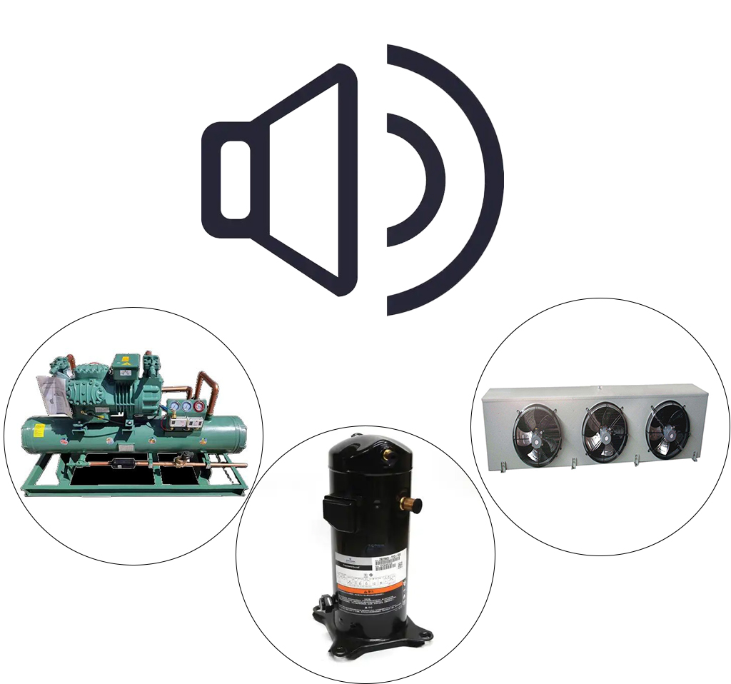 Industrial refrigeration systems: can reach 70-85 decibels, similar to the noise of a busy street